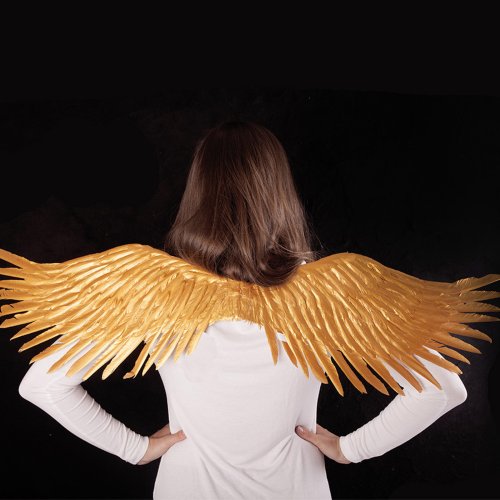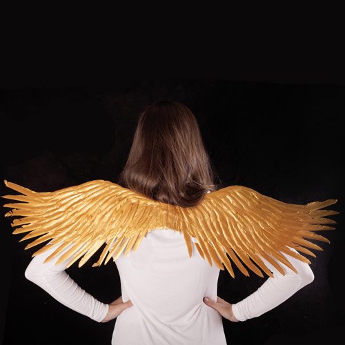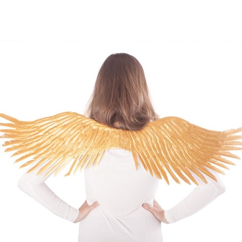 Prekrásne krídla pre skutočných anjelov v zlatej farbe! Tento parádny kúsok na gumičku je skvelým doplnkom k anjelskému kostýmu. Veľkosť krídiel po rozložení je cca 96 cm.