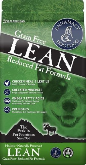 Krmivo Annamaet Grain Free LEAN s nižším obsahom tukov (8%) je ideálne na znižovanie a udržiavanie telesnej hmotnosti a vhodné pre psov s pankreatitídou. Vysoký obsah proteínov (30%) zaisťuje krmivu sýtosť a pomáha udržiavať svalovú hmotu bez tvorby tukových zásob. Hlavnými zdrojmi bielkovín v tejto receptúre sú kura, kačica a sleď. Všetka hydina pochádza z ekologických chovov nepoužívajúcich antibiotiká ani hormóny. Krmivo je vhodné pre psov vo všetkých životných štádiách – šteňatá, gravidné i dojčiace sučky a dospelé psy. Receptúra bez obilnín. Hlavné prednosti krmiva: