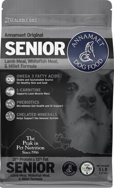 Nové kompletné krmivo z radu Annamaet Original pomáha najmä starším psom udržať si dobrú kondíciu aj napriek vyššiemu veku. Hlavnými živočíšnymi zložkami, ktoré zaisťujú optimálny aminokyselinový profil, sú biele morské ryby a jahňacie. V zložení nájdete okrem iného kurkumu, jednu z najsilnejších prírodných protizápalových látok, a kokosový olej, bohatý zdroj triglyceridov so stredne dlhým reťazcom (MCT), ktoré fungujú ako alternatívne „palivo“ pre starnúci mozog. Tekvica a ďalšie prebiotiká napomáhajú tráveniu a vyšší obsah bielkovín prispieva k zachovaniu svalovej hmoty bez tvorby tuku. Hlavné prednosti krmiva:
