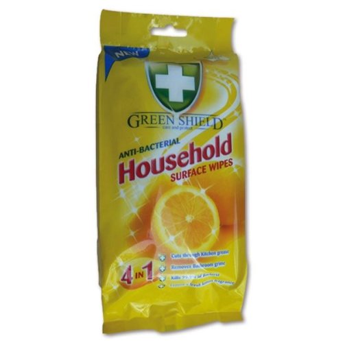 Vlhčené antibakteriálne utierky GREEN SHIELD 4v1 rýchlo odstraňujú mastnotu v kuchyni av kúpeľni, zanechávajú sviežu citrónovú vôňu