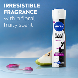 Patentovaná technológia DualShield Skin & Clothes znamená dvojitú až 72-hodinovú ochranu pre vašu pokožku aj oblečenie. Sprej antiperspirant Black & White Authentic vás ochráni pred zápachom, potom a podráždením. Jemná starostlivosť, ktorá funguje.S našou neviditeľnou ochranou sa váš šatník nemusí báť škvŕn od potu či stôp po spreji.Užite si navyše sviežu, autentickú vôňu inšpirovanú mladou generáciou. Vhodné aj pre citlivú pokožku. Zoznámte sa so svetovou jednotkou v dezodorantoch nezanechávajúcich škvrny na oblečení* – radom NIVEA Black & White. *Zdroj: Nielsen-IQ, Market Track, trh dezodorantov, segment dezodorantov proti škvrnám (kategória definovaná klientom), analýza v 51 krajinách/regiónoch (definované klientom), predajná hodnota a hodnota predaja v baleniach, MAT koniec júna 2025 (júl 2024 – jún 2025).