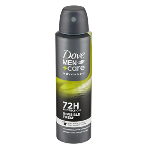 Zostaňte svieži a zároveň chráňte svoje oblečenie s antiperspirantom Dove Men + Care Invisible Fresh. Jeho pokročilé zloženie s technológiou Triple Action zaisťuje až 72hodinovú ochranu proti poteniu a zápachu, zatiaľ čo technológia s ¼ hydratačného krému sa stará o pokožku a chráni ju pred podráždením. Tento antiperspirant bol navrhnutý tak, aby nezanechával biele ani žlté stopy na oblečení – môžete sa tak cítiť úplne sebaisto v čiernej aj bielej. Navyše vás poteší dlhotrvajúcou sviežou vôňou citrusov, ktorá podčiarkne vašu energiu a čistotu po celý deň. Tento produkt pochádza od značky uvedenej v programe Beauty Without Bunnies organizácie People for the Ethical Treatment of Animals (PETA), ktorý združuje značky deklarujúce, že ich produkty nie sú testované na zvieratách.