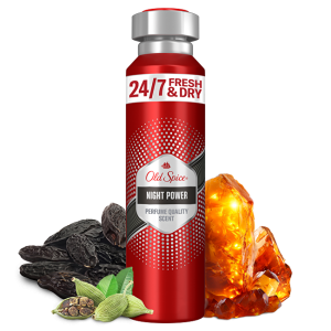Doprajte si dlhotrvajúcu ochranu proti poteniu spolu s intenzívnou vôňou parfumovej kvality. Antiperspirant v spreji Night Power vám poskytne celodennú sviežosť a suchý pocit – 24 hodín denne, 7 dní v týždni (*pri pravidelnom používaní). tonky a jantárových tónov. Vďaka inovatívnemu zloženiu 5× Active Defence sa môžete spoľahnúť na dlhotrvajúcu vôňu a ochranu proti zápachu a potu.
