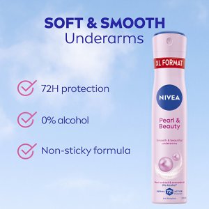 Túžite po neodolateľne hladkom a krásnom podpazuší? Vyskúšajte unikátny antiperspirant s ošetrujúcim zložením bez alkoholu s cennými výťažkami z perál. Vaša pokožka bude neodolateľne hebká, príťažlivá a svieža až na 72 hodín. Spoľahnite sa na účinnú ochranu s veľmi ženskou a zmyselnou vôňou. Eliminuje potenie a nepríjemný zápach vďaka technológii Derma Active Protection a zároveň sa stará o vaše podpazušie.
