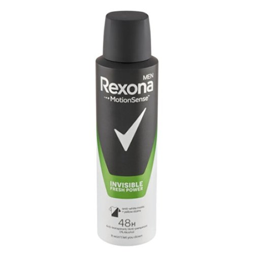 Tento antiperspirant pre mužov spoľahlivo bojuje proti žltým škvrnám na bielom oblečení a bielym stopám na čiernom oblečení. Obsahuje technológiu MotionsenseTM, ktorá sa postupne uvoľňuje a zachová po celý deň maximálny pocit sviežosti. Rexona MEN antiperspirant sprej Invisible Fresh & Power je dermatologicky testovaný, poskytuje 48-hodinovú ochranu proti poteniu a zápachu a jeho zloženie neobsahuje alkohol.