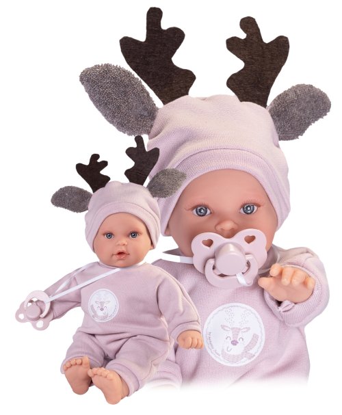 Plačúca a hovoriaca, ručne vyrobená realistická španielska bábika, reagujúca na magnetický cumlík. Po vytiahnutí cumlíka z úst vydáva reálny zvuk plačúceho dieťaťa, ktorý je možné utíšiť opäť cumlíkom a hovorí „mama“, „papa“. Bábika má mäkké látkové telo, hlava a končatiny sú vyrobené z kvalitného mäkčeného vinylu. Oblečenie niektorých bábik bolo vyrobené z organickej bavlny, ktorá zaručuje výrobu z ručne zbieranej, ekologicky bez chemického ošetrenia pestovanej bavlny. Firma Antonio Juan kladie veľký dôraz na ekológiu a preto ako prvá využíva v tomto odvetví spomínanú bavlnu. Veľkosť 27 cm. Balené v darčekovej krabici. Odporúčaný vek od 2 rokov. Súčasťou balenia je 3 x gombíková batéria LR44 s návodom na jej výmenu. Batérie sú spotrebný tovar a preto ich vybitie nie je dôvodom na reklamáciu bábiky.
