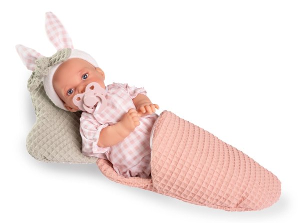 Ručne vyrobená realistická španielska bábika s mäkkým látkovým telom. Hlava a končatiny sú vyrobené z kvalitného mäkčeného vinylu. Oblečenie niektorých bábik bolo vyrobené z organickej bavlny, ktorá zaručuje výrobu z ručne zbieranej, ekologicky bez chemického ošetrenia pestovanej bavlny. Firma Antonio Juan kladie veľký dôraz na ekológiu a preto ako prvá využíva v tomto odvetví spomínanú bavlnu. Veľkosť 27 cm. Balené v darčekovej krabici. Odporúčaný vek od 2 rokov.