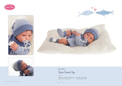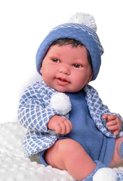 Ručne vyrobená realistická španielska bábika - bábätko new born s celovinylovým telom a realistickým vyobrazením rôznych bábätkovských faldíkov a detailov vrátane pohlavia. Bábika je vyrobená zo špeciálneho mäkčeného vinylu, veľmi príjemného na dotyk. Oblečenie niektorých bábik bolo vyrobené z organickej bavlny, ktorá zaručuje výrobu z ručne zbieranej, ekologicky bez chemického ošetrenia pestovanej bavlny. Firma Antonio Juan kladie veľký dôraz na ekológiu a preto ako prvá využíva v tomto odvetví spomínanú bavlnu. Veľkosť 42 cm. Balené v darčekovej krabici. Odporúčaný vek od 3 rokov.