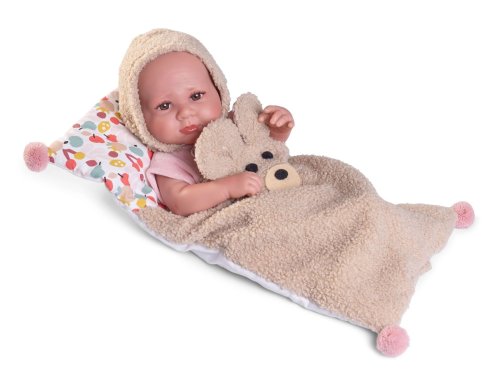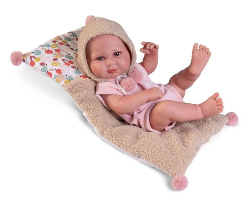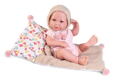 Ručne vyrobená realistická španielska bábika - bábätko new born s celovinylovým telom a realistickým vyobrazením rôznych bábätkovských faldíkov a detailov vrátane pohlavia. Bábika je vyrobená zo špeciálneho mäkčeného vinylu, veľmi príjemného na dotyk. Bábätko sa dá kúpať, ale je potrebné dať pozor, aby sa nenamočili riasy. Odlepené riasy nie sú potom dôvodom na reklamáciu. Oblečenie niektorých bábik bolo vyrobené z organickej bavlny, ktorá zaručuje výrobu z ručne zbieranej, ekologicky bez chemického ošetrenia pestovanej bavlny. Firma Antonio Juan kladie veľký dôraz na ekológiu a preto ako prvá využíva v tomto odvetví spomínanú bavlnu. Veľkosť 42 cm. Balené v darčekovej krabici. Odporúčaný vek od 3 rokov.