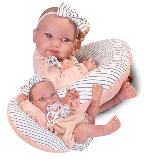 Ručne vyrobená realistická španielska bábika - bábätko new born s celovinylovým telom a realistickým vyobrazením rôznych bábätkovských faldíkov a detailov vrátane pohlavia. Bábika je vyrobená zo špeciálneho mäkčeného vinylu, veľmi príjemného na dotyk. Bábätko sa dá kúpať, ale je potrebné dať pozor, aby sa nenamočili riasy. Odlepené riasy nie sú potom dôvodom na reklamáciu. Oblečenie niektorých bábik bolo vyrobené z organickej bavlny, ktorá zaručuje výrobu z ručne zbieranej, ekologicky bez chemického ošetrenia pestovanej bavlny. Firma Antonio Juan kladie veľký dôraz na ekológiu a preto ako prvá využíva v tomto odvetví spomínanú bavlnu. Veľkosť 42 cm. Balené v darčekovej krabici. Odporúčaný vek od 3 rokov.