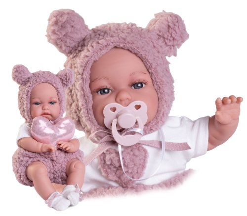 Ručne vyrobená realistická španielska bábika - bábätko, so špeciálnou pohybovou funkciou. Vďaka vnútornej opore kostry tela, môže robiť neobvyklé pohyby končatín, ako prekrížiť nožičky v ľahu, dať k sebe dlane alebo zaujať rôzne bábätkovské polohy. Bábätko má mäkké látkové telo, hlava a končatiny sú vyrobené z kvalitného mäkčeného vinylu. Oblečenie niektorých bábik bolo vyrobené z organickej bavlny, ktorá zaručuje výrobu z ručne zbieranej, ekologicky bez chemického ošetrenia pestovanej bavlny. Firma Antonio Juan kladie veľký dôraz na ekológiu a preto ako prvá využíva v tomto odvetví spomínanú bavlnu. Veľkosť 34 cm. Balené v darčekovej krabici. Odporúčaný vek od 3 rokov.