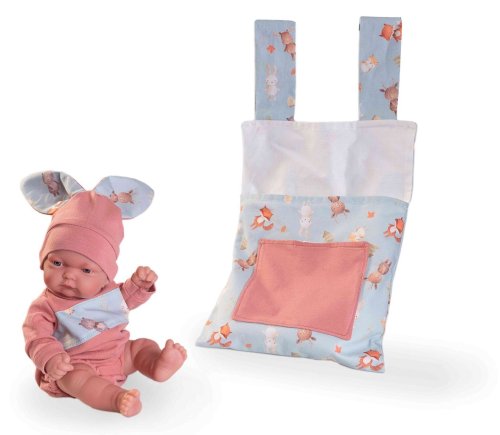 Ručne vyrobená realistická španielska bábika - bábätko new born s celovinylovým telom a realistickým vyobrazením rôznych bábätkovských faldíkov a detailov vrátane pohlavia. Bábika je vyrobená zo špeciálneho mäkčeného vinylu, veľmi príjemného na dotyk. Bábätko je možné kúpať. Oblečenie niektorých bábik bolo vyrobené z organickej bavlny, ktorá zaručuje výrobu z ručne zbieranej, ekologicky bez chemického ošetrenia pestovanej bavlny. Firma Antonio Juan kladie veľký dôraz na ekológiu a preto ako prvá využíva v tomto odvetví spomínanú bavlnu. Veľkosť 26 cm. Balené v darčekovej krabici. Odporúčaný vek od 2 rokov.