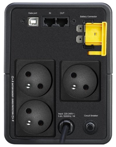 Záložný zdroj s výkonom 410 W s tromi zásuvkami typu FR a line-interaktívnou topológiou je vhodný pre počítače, modemy, herné konzoly a ďalšiu elektroniku v domácnosti alebo kancelárii. Ponúka záložné napájanie z batérie počas výpadkov a nestabilných kolísaní napätia a taktiež poskytuje ochranu proti poškodeniu spôsobenému prepätím a rázmi. Automatická regulácia (AVR) zvýši alebo zníži hodnotu napätia podľa pripojeného zariadenia, zároveň predlžuje životnosť batérie. Navyše disponuje ochranou dátovej linky (Ethernet) pred prúdovými rázmi a prepätím. Akustické varovania a signalizačná LED dióda potom upozorňujú na zmeny stavu jednotky UPS či parametrov napájania.