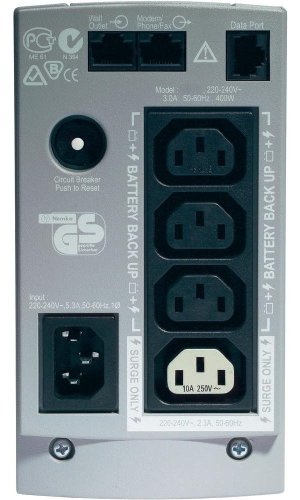 VÝSTUP Kapacita výstupného výkonu [W]: 210 Kapacita výstupného výkonu [VA]: 350 Menovité výstupné napätie [V]: 230 Topológia: Pasívne Výstupné prípojky: (2) IEC Jumpers (Záložná prevádzka na batérie) (3) IEC 320 C13 (Záložné prevádzka na batérie) (1) IEC 320 C13 (selector_surgetitle)