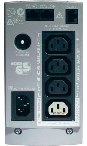 Záložný zdroj umožňuje pripojenie až štyroch zariadení pomocou zásuviek IEC 320 C13 a všetky ich chrániť proti prepätiu , tri z nich je možné záložne napájať. Prepäťová ochrana je tiež dostupná pre telefónnu alebo internetovú sieť . UPS je vybavená LED signalizáciou, informujúcou o jej stave, a dáta portom, ktorý ponúka voľbu medzi RS232 a USB konektorom pre spárovanie a komunikáciu s počítačom. Vďaka svojim malým rozmerom je záložný zdroj vhodný do domácnosti aj kancelárie.
