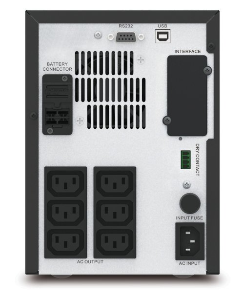 VÝSTUP Kapacita výstupného výkonu [W]: 700 Kapacita výstupného výkonu [VA]: 1000 Menovité výstupné napätie [V]: 230 Topológia: Line interaktívny Typ krivky: Sinusoida Výstupné prípojky: (6) IEC 320 C13 (Záložná prevádzka na batérie)