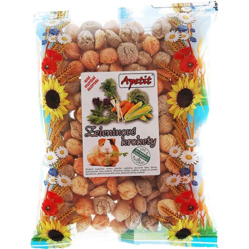 Veľké chrumkavé zeleninové krokety pre hlodavce. Zložené z čisto prírodných ingrediencií bez pridaného cukru, umelých farbív a konzervantov.