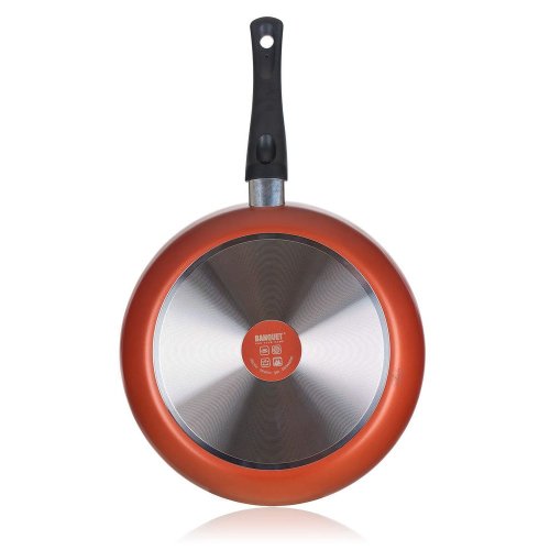 Hliníková panvica PATINA 20 x 3,8 cm s nepriľnavým 2vrstvovým povrchom XYLAN a čiernou bakelitovou nitovanou rukoväťou. Ľahká panvica na použitie na všetky typy varných dosiek mimo indukcie.