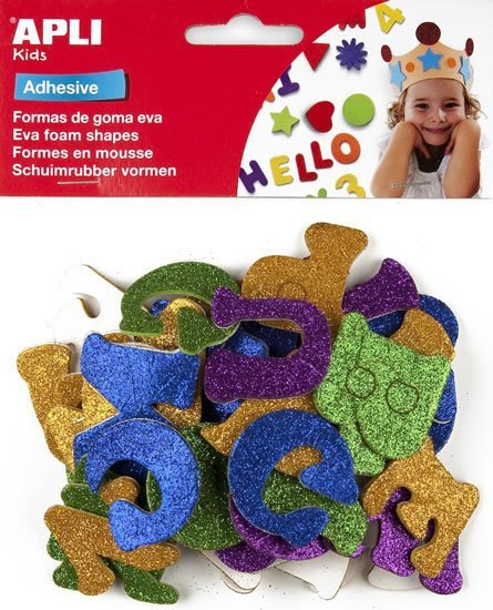 Penovka v tvare písmen abecedy vo farebnom mixe s trblietkami na povrchu. Veľkosť tvarov: 10 – 40 mm. Zadná strana je samolepiaca. Určené na tvorbu dekorácií, kreatívne a pedagogické aktivity. Balenie: 50 ks.