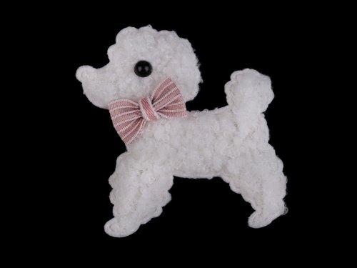 Textilná aplikácia psíka vykúzli vášmu outfitu originálny dizajn. Má povrch imitujúci chundelatú srsť, psík je na krku ozdobený mašličkou. Aplikáciu môžete našiť alebo prilepiť. Použitie: Aplikáciu využijete pri zdobení odevov napr. na mikiny, bundy, svetre, čiapky. Použiť ju môžete aj v scrapbookingu pri vytváraní rôznych prianí, albumov, denníkov atď.