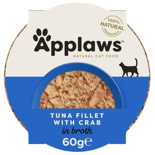 Applaws je ľahko stráviteľné, nutrične vysoko hodnotné, prirodzene bezlepkové, hypoalergénne a hlavne veľmi chutné kŕmenie! 100% prírodné krmivo bez umelých konzervačných látok, farbív alebo dochucovadiel. Kvalitu spoznáte na prvý pohľad – cez priehľadný obal sami vidíte prirodzenú konzistenciu krmiva v podobe celých kúskov tuniaka a krevetiek. Ryby pochádzajú z oceánov a sú lovené spôsobom, ktorý neohrozuje delfíny (Dolphin Friendly Product). Applaws miska Cat Pot obsahuje 60% šťavnatého mäsa a chutný vývar, preto ide o skvelú voľbu pre mačky, ktoré málo pijú alebo potrebujú vyšší prísun tekutín. Balenie v nízkych plastových miskách umožňuje jednoduché servírovanie. Misku stačí otvoriť a môžete podávať! Zloženie: 56% tuniak filety, rybí vývar, ryža, 4% krab. Analytické zložky: hrubý proteín 12 %, hrubé oleje a tuky 1 %, hrubý popol 1 %, hrubá vláknina 0,1 %, vlhkosť 84 %. Metabolizovateľná energia: 659 kcal/kg (39,5 kcal v 60 g balení) Dávkovanie: Kŕmte až 2 misky denne v závislosti od veľkosti mačky. Odporúčané dávkovanie je iba orientačné, potreba je individuálna a závisí od veku, množstva pohybu a životného prostredia mačky. Podávajte ako spestrenie ku kompletnej vyváženej strave, ideálne ku granulám Applaws. Podávajte pri izbovej teplote a po otvorení uchovávajte v chladničke. Mačke zaistite stály prístup k čerstvej pitnej vode.