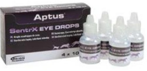 Očné kvapky obsahujúce biopolyméry, sú určené na zvlhčenie a lubrikáciu očnej rohovky u psov, mačiek a koní. Aptus SentrX očnej kvapky je lubrikant rohovky obsahujúci biopolyméry - modifikovanú zosieťovanú kyselinu hyalurónovú. Poskytuje dlhotrvajúce zvlhčenie a lubrikáciu očnej rohovky, čím potláča symptómy tzv. „suchého oka“ (KCS, keratokonjunctivitis sicca). Tieto očné kvapky sú určené pre psov so syndrómom tzv. „suchého oka“, a pre všetky ostatné prípady vyžadujúce zvlhčenie a lubrikáciu očnej rohovky. Cieľový druh zvieraťa: pes, mačka, kôň.