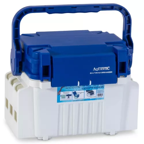 Aquantic Salt Shad Organizer je špičkové riešenie pre morských rybárov, ktorí vyžadujú maximálny prehľad a odolnosť. Tento vysoko kvalitný a nárazuvzdorný box bol navrhnutý tak, aby spĺňal potreby nórskeho morského rybolovu. Štyri vyberateľné kazety s rôznymi veľkosťami priehradiek umožňujú bezpečné uloženie pilkrov, trblietok a iných nástrah. Veko obsahuje priestranný oddiel na olova a umelé nástrahy, nechýba ani EVA vložka pre náväzce. Vďaka protišmykovej gumovej vrstve na spodnej strane stojí box pevne aj pri plavbe vo vlnách. Všetky použité materiály sú 100% odolné proti korózii. Na bok boxu je možné uchytiť až 6 držiakov prútov (IRON TROUT Rod Rest).