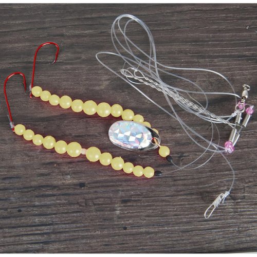 Hlavný vlasec je osadený dvoma háčikmi, sú umiestnené na oceľovom ramene, ktoré dovoľuje nástrahe rotovať okolo vlasca bez zamotania. Systém je vybavený niekoľkými bielymi korálkami a trblietkou. Je neodolateľný pre všetky druhy platesa. Súčasťou balenia je EVA Board - penová doska na náväzce.