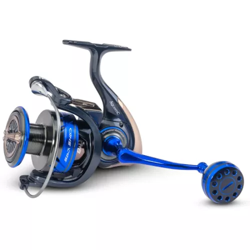 Aquantic Salt Shad Halibut 5000 je vysoko kvalitný morský navijak naladený na záťažový rybolov a cielený lov halibuta. Ponúka plynulý chod vďaka 9+1 guličkovým ložiskám z nerezovej ocele a zároveň pevnú, torzne stabilnú konštrukciu s grafitovým telom určeným do slanej vody. Rýchla predná brzda Fast Drag pracuje s karbónovými brzdovými podložkami a umožňuje svižné doladenie brzdného účinku počas zdolávania. Výrazným prvkom je ľahký, napriek tomu veľmi stabilný Air Rotor, ktorý zlepšuje vyváženie a celkový komfort pri dlhšej práci s nástrahou. CNC obrábaná hliníková kľučka s veľkým hliníkovým úchopom sedí určite v ruke aj v náročných podmienkach na mori.