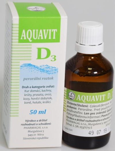 Vitamínový prípravok s obsahom v tuku rozpustnom vitamíne D3, upraveného do vodorozpustnej formy. Vitamín D3 zodpovedá za ukladanie vápnika a fosforu a tiež stimuluje resorpciu vápnika a fosforu. Jeho nedostatok sa môže prejaviť rachitídou mladých zvierat a osteomaláciou dospelých zvierat. Zloženie: Colecalciferolum 160 000 000 IU v 1 000 ml Pomocné látky: tokoferol alfa-acetát (E 307), benzylalkohol (E 1519), propylénglykol, polysorbát 80, čistená voda.