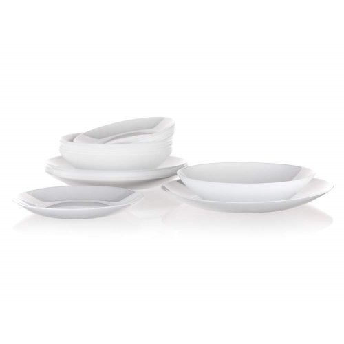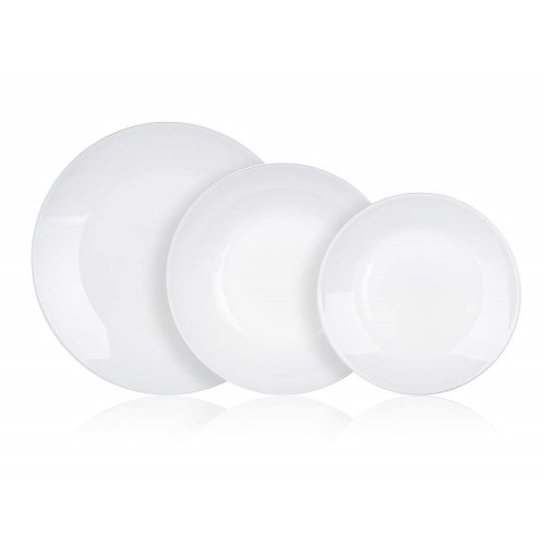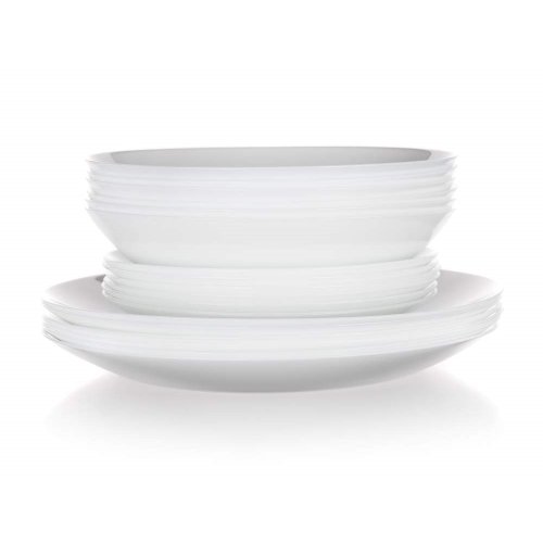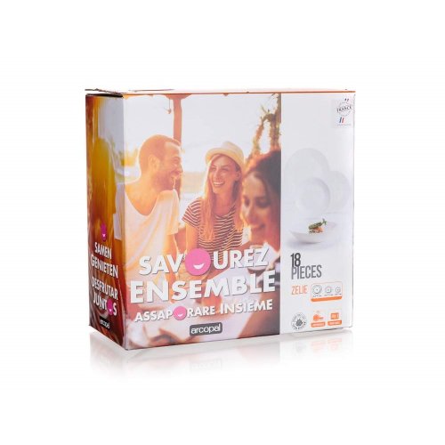 Sada tanierov ZELIE 18 ks obsahuje: 6 ks tanier plytký 25 cm, 6 ks tanier hlboký 20 cm a 6 ks tanier dezertný 18 cm. Súprava tanierov je vyrobená z veľmi kvalitného skla s vysokou pevnosťou a odolnosťou pri používaní. Riad je vysoko odolný proti poškriabaniu, oteru, tepelnému šoku, je tiež neporézny a teda zabraňuje usadzovaniu baktérií. Udržuje teplotu pokrmov a je 100% recyklovateľné.