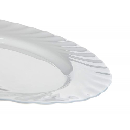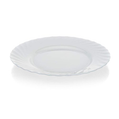 Plytký tanier 24,5 cm TRIANON vhodný na podávanie pokrmov, je vyrobený z tvrdeného skla v bielej farbe, ktoré možno používať do mikrovlnej rúry aj do umývačky riadu. Tanier je vysoko odolný proti poškriabaniu, oteru, tepelnému šoku, je neporézny, teda zabraňuje usadzovaniu baktérií, a je 100% recyklovateľný.