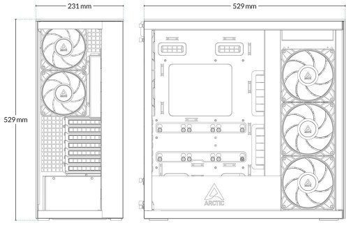 Počítačová skriňa ARCTIC Xtender VG Clear obsahuje celkom 5 predinštalovaných A-RGB ventilátorov s Fluid Dynamic Bearing ložiskami , ktoré zaisťujú silný prietok vzduchu pri plnom zaťažení. Číre bočné a predné sklo predstavujú ideálnu voľbu pre elegantnú prezentáciu komponentov vo vnútri skrine. Dostupný priestor vo vnútri skrine umožní inštaláciu základných dosiek až E-ATX so šírkou 285 mm , samozrejmosťou je tiež podpora úložiska a jeho rozšírenie, inštalácia grafickej karty a pod. Prachové filtre na hornej a pravej bočnej strane sú ľahko odnímateľné, bránia usadzovaniu prachu, a tak podporujú dlhší prevádzkový cyklus komponentov.