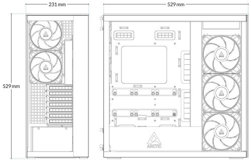 Počítačová skriňa ARCTIC Xtender VG Black obsahuje celkom 5 predinštalovaných A-RGB ventilátorov s Fluid Dynamic Bearing ložiskami , ktoré zaisťujú silný prietok vzduchu pri plnom zaťažení. Tónované bočné sklo predstavuje ideálnu voľbu pre elegantnú prezentáciu komponentov vo vnútri skrine. Dostupný priestor vo vnútri skrine umožní inštaláciu základných dosiek až E-ATX so šírkou 285 mm , samozrejmosťou je tiež podpora úložiska a jeho rozšírenie, inštalácia grafickej karty a pod. Prachové filtre na hornej a pravej bočnej strane sú ľahko odnímateľné, bránia usadzovaniu prachu, a tak podporujú dlhší prevádzkový cyklus komponentov.