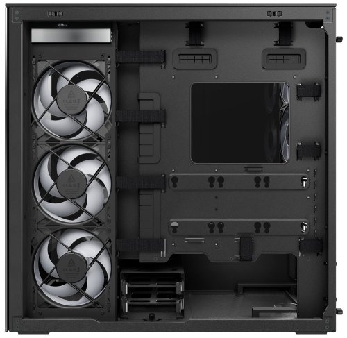 Predinštalované ventilátory P12 Pro (vzadu) dosahujú rýchlosť 600–3000 rpm s prietokom vzduchu 77 CFM. Bočné P14 Pro Reverse ventilátory pracujú v rozsahu 400–2650 rpm s prietokom 98 CFM pre efektívny odvod tepla.