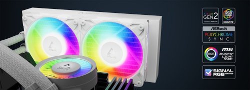 Pokročilé All-in-One vodné chladenie s RGB podsvietením a dodatočným VRM ventilátorom pre maximálny výkon.