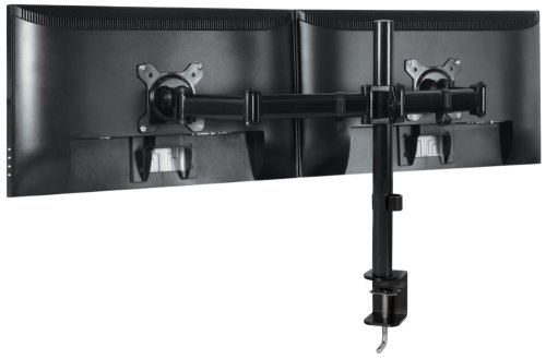 Nastaviteľný držiak pre dva monitory ušetrí miesto na pracovnom stole. Držiak je vhodný pre ploché LCD monitory o veľkosti uhlopriečky 13" až 28" (pre ultraširoké max. 25") a hmotnosti do 2× 7,5 kg . Umožňuje jednoduché nastavenie optimálnej výšky, náklonu i otočenia monitorov. Ľahko sa pripevní pomocou svorky na dosku stola. Intuitívny systém správy kabeláže minimalizuje neporiadok.