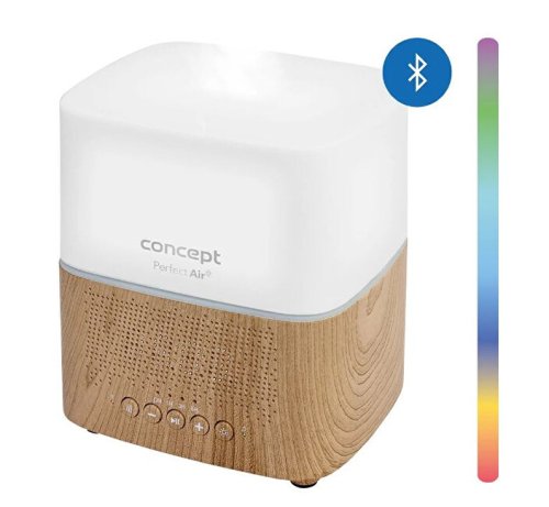 Aróma difuzér Light wood Concept DF2010 Perfect Air ponúka mnoho využití. Môžete ho využiť na aromaterapiu, ako zvhlčovač vzduchu, Bluetooth reproduktor alebo budík. Má 300 ml nádobkou na vodu, ktorá poskytuje až 10 h nepretržitej prevádzky.