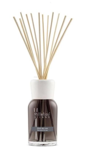 Aróma difuzér Čierny čaj a ruža je upokojujúca a noblesná vôňa, inšpirovaná arómou čierneho čaju a rooibosu, ktoré sa miešajú s dychom bielej ruže. Sklenená fľaštička je zakončená elegantným keramickým krúžkom. Po vyprchaní vône možno jednoducho kúpiť iba náplň a po vymytí fľaštičky doplniť ľubovoľnou vôňou.
