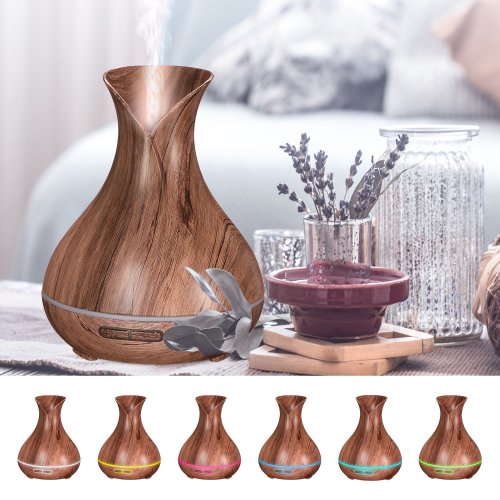 Každého milovníka aróma difuzérov poteší svojim nadčasovým dizajnom . Zapadne skvele do každého interiéru . Aj napriek svojmu vzhľadu ponúka nielen aromaterapiu, ale aj chromoterapiu . Tá pomáha v liečbe alternatívnej medicíny (farby majú upokojujúce schopnosti a pomáhajú ľuďom naladiť harmóniu duše). Na výber je zo 7 farieb . Tie si ľahko zmeníte pomocou tlačidla LIGHT .