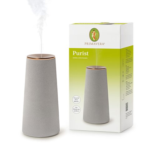 Aróma Nebulizer Purist pracuje na báze veľmi malých kvapôčok 100% éterického oleja. Tieto kvapôčky sa rozprestierajú vo forme jemnej hmly vo vzduchu v miestnosti a intenzívne a dlhodobo ju prevoňajú. Použitá tryska z nerezovej ocele je v Nemecku patentovaná. Fľaštičky s éterickými olejmi PRIMAVERA s obsahom 5 ml a 10 ml sa naskrutkujú priamo do trysky. Jednoduchá manipulácia bez prelievania, žiadne riedenie vodou.