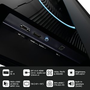 Vďaka podpore Adaptive Sync a HDR10 poskytuje plynulý obraz bez trhania as vylepšeným dynamickým rozsahom. Vstavané stereo reproduktory (2 × 3 W) umožňujú okamžité použitie bez nutnosti externého audio riešenia.