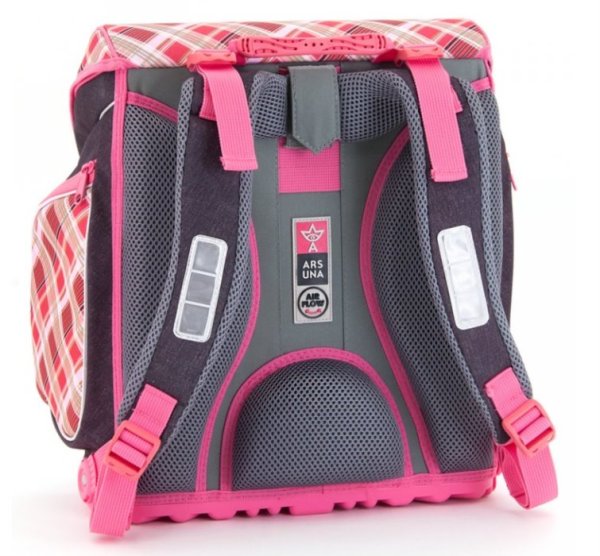 Školská aktovka Ars Una z kolekcie Charming Stars Kone, ktorá je určená pre deti vo veku 6-10 rokov, teda prvého stupňa základnej školy. Aktovka je výnimočná použitými materiálmi a kvalitným spracovaním. Aktovka má výborne spracované priedušné polstrovanie v bedrovej oblasti. Dno je pevné a vodeodolné. Na aktovke nájdete množstvo bezpečnostných prvkov v podobe reflexných pások. V hlavnej komore sú tri vnútorné priehradky na učebnice a zošity, ďalej potom jedna menšia na uloženie menších predmetov a vnútorná priehradka na zips na bezpečné uloženie napr. peňaženky či mobilného telefónu. Na bokoch sú dve priestranné priehradky na zips, ktoré pojmú fľašu na pitie či prezuvky. Ďalšou výhodou sú trojbodové nastaviteľné a veľmi komfortné ramenné popruhy.