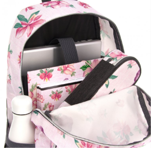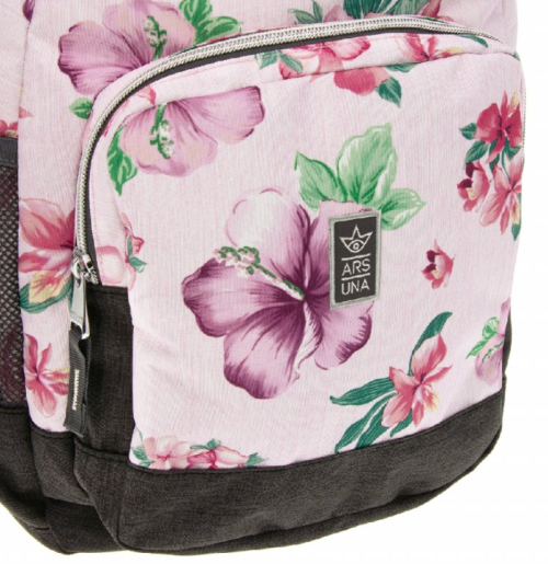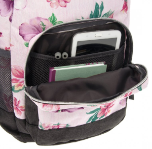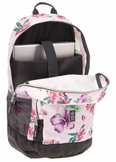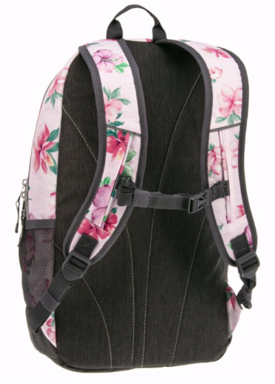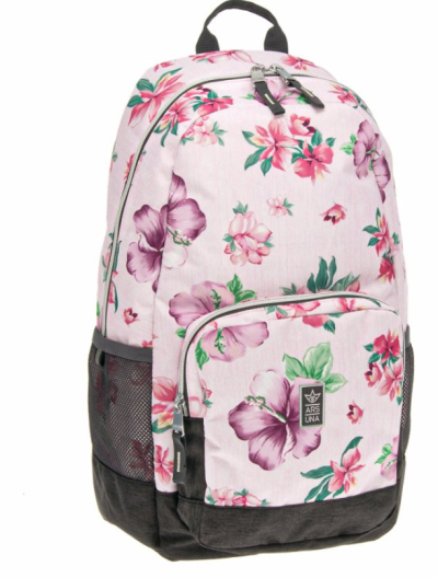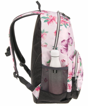 Vysoko kvalitný školský plecniak v kvetinovom dizajne Flowers, typ AU-14. Batoh je vyrobený z prvotriedneho a pevného materiálu. Skladá sa z dvoch hlavných komôr na zips s ďalším bohatým vnútorným členením na písacie potreby, mobil či iné drobnosti. Ďalšou výhodou je polstrovaná priehradka pre notebook. Popruhy sú polstrované, mäkké a je možné ich nastaviť na správne padnúcu veľkosť. Dve bočné vrecká zo sieťoviny slúžia na prenos fľaše s vodou alebo menších predmetov. Rozmery: 32 x 51 x 25 cm Materiál: 100% nylon polyester Objem: 27l Nosnosť: až 12 kg Vhodné pre žiakov od 5.triedy ZŠ aj stredoškolákov.