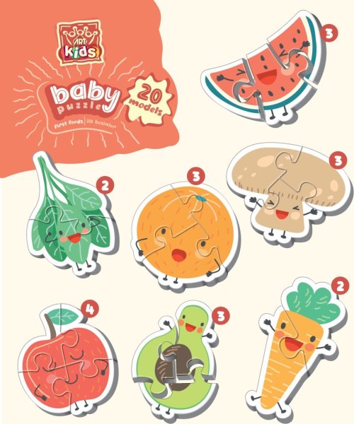 7 rôznych obrysov vyrobených z kartónu s hrúbkou 2,5 mm ľahko udržateľný povrch rozvíja schopnosť radenia, riešenie problémov, jemnú motoriku a koordináciu ruka-oko