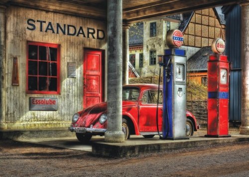 Drevené puzzle v špeciálnom darčekovom balení s motívom čerpacej stanice.