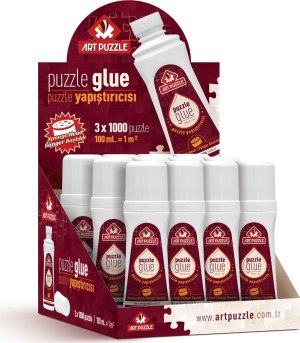 Tekuté lepidlo na puzzle na trvalé zlepenie od výrobcu ART PUZZLE. Má praktické použitie (nanáša sa priamo na obrázok pomocou aplikátora na fľaštičke, lepidlo zatečie do škár medzi dielikmi). Doba schnutia: 2-3 hodiny. Lepidlo vystačí na plochu asi 1 m², čo je napr. 6 puzzle x 500 dielikov alebo 3 puzzle x 1000 dielikov. Objem 100 ml.