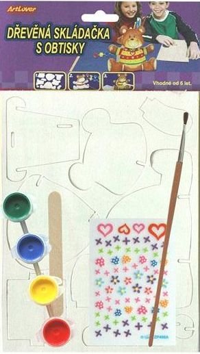 Súčasťou balenia sú totiž farbičky a štetec a tiež sada obtlačkov. Každé puzzle je tak práve váš originál!
