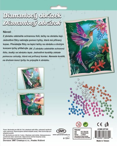 Jednotlivé kamienky naberajte pomocou aplikátora s priľnavým koncom. Z obrázku odstráňte ochrannú fóliu, bodky na obrázku lepia. Prenášajte kamienky na lepiace bodky a druhým koncom aplikátora ich pritláčajte. Obsah balenia: * podkladový obrázok (rozmery 20,3 x 25,4 cm) * kamienky v 6 rôznych farbách * aplikátor s priľnavou špičkou Vhodné pre deti od 6 rokov.