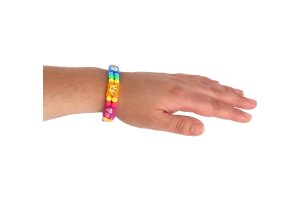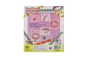 Obsahuje 54 štvorcových náramkov, 300 korálok, 9 gumičiek, 3 archy penových samolepiek.
